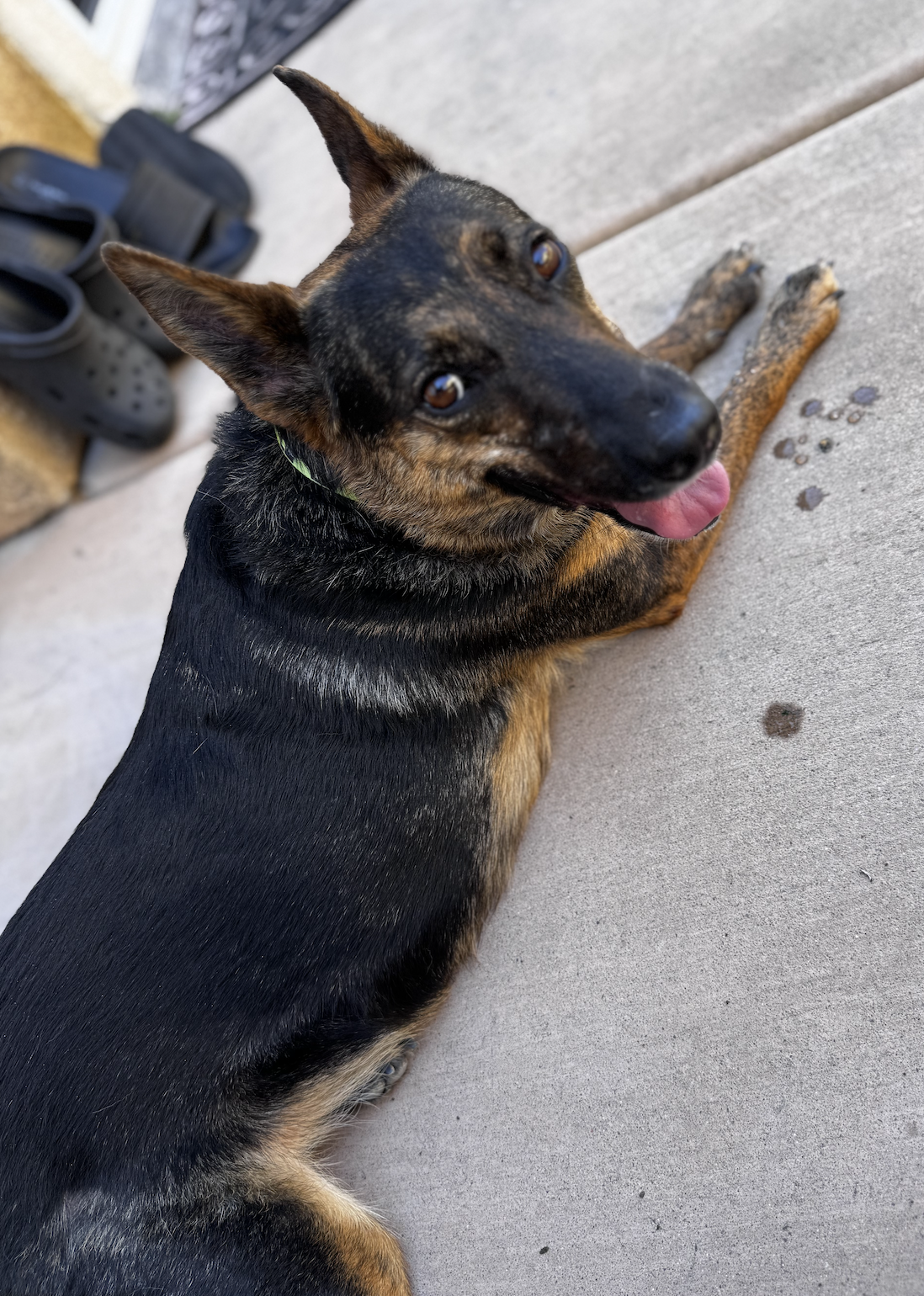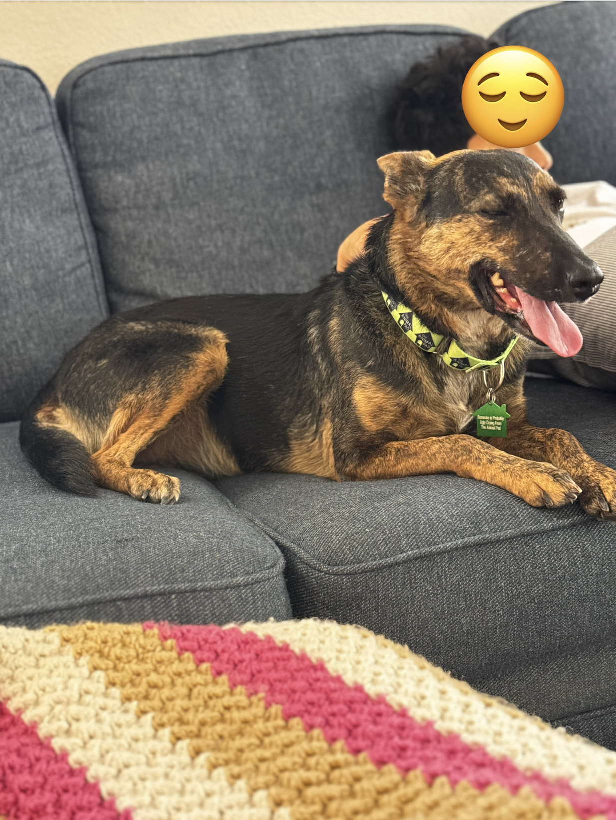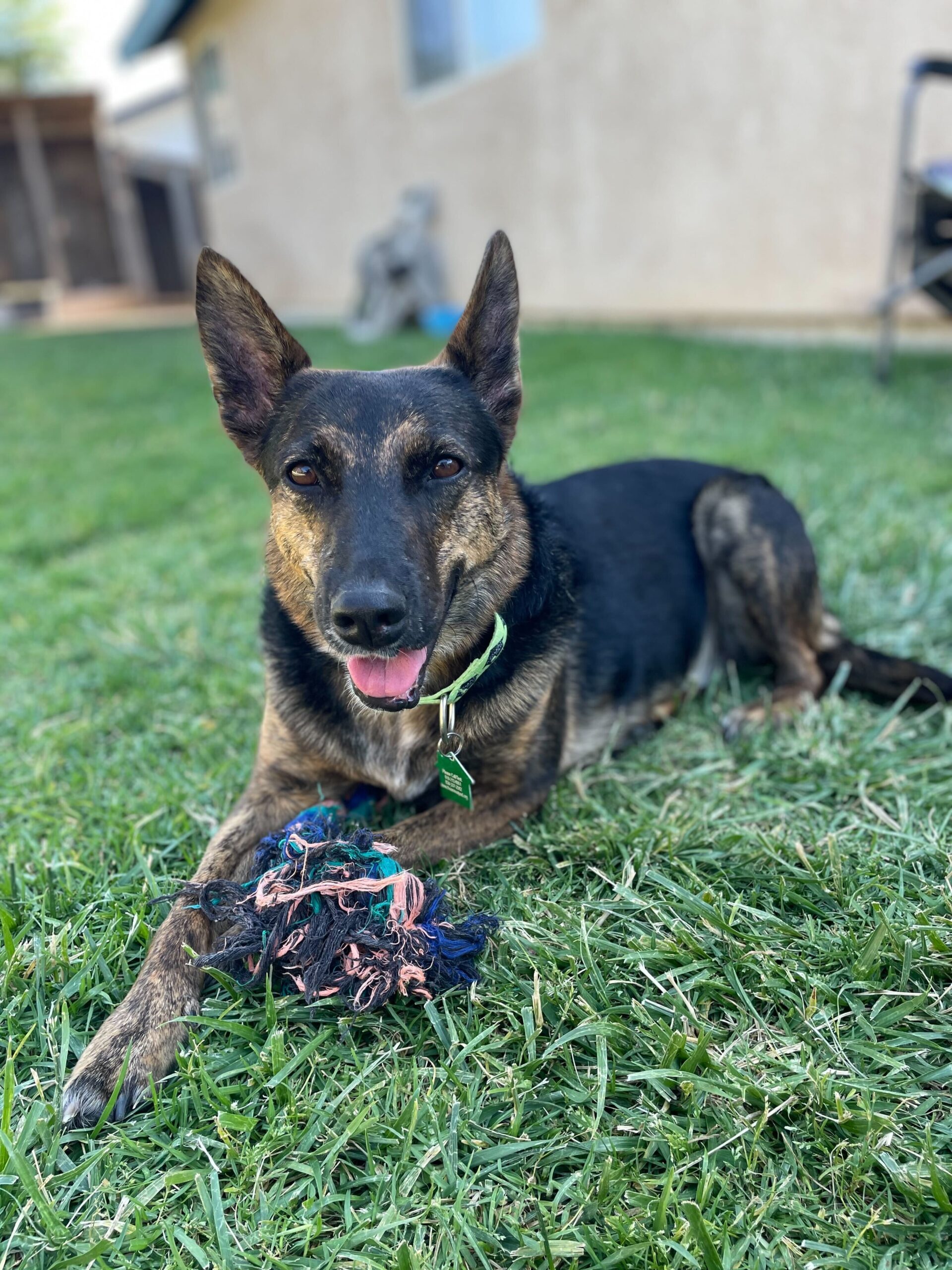 Hi, I’m Chula, a 4.5-year-old German Shepherd mix weighing 45 lbs and have been spayed. I was rescued from a shelter in Mexico, where the conditions were really tough, but I’m so happy to be safe now! I’m a sweet, gentle girl with a heart of gold. I’m still learning to trust humans, especially adult males, but once I do, I’ll give you all the love and loyalty I have to offer. I’m bathroom trained and do well with a set schedule.
