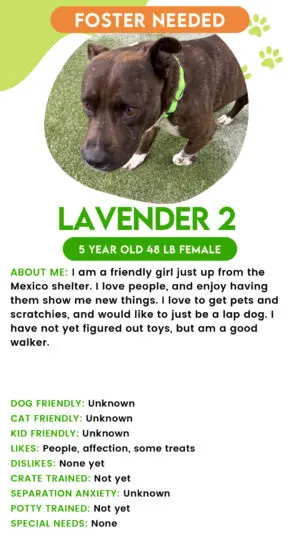 Our matchmaking team will provide a list of dogs with upcoming Temp Foster needs and after reviewing their bios and the dates they need care, you can let us know if there is a pup you are interested in helping!