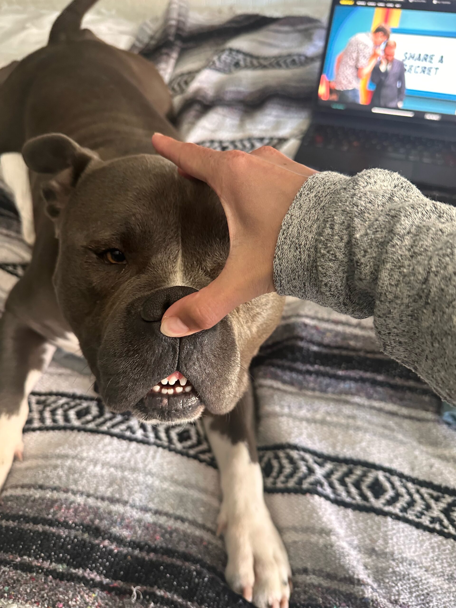 Hey there! Bud’s the name and being your lifelong friend is the game. I’m 2 years old, a solid 87 pounds of American Staffordshire sweetness, and I’ve got enough love in this big ol’ heart to make your day, every day!