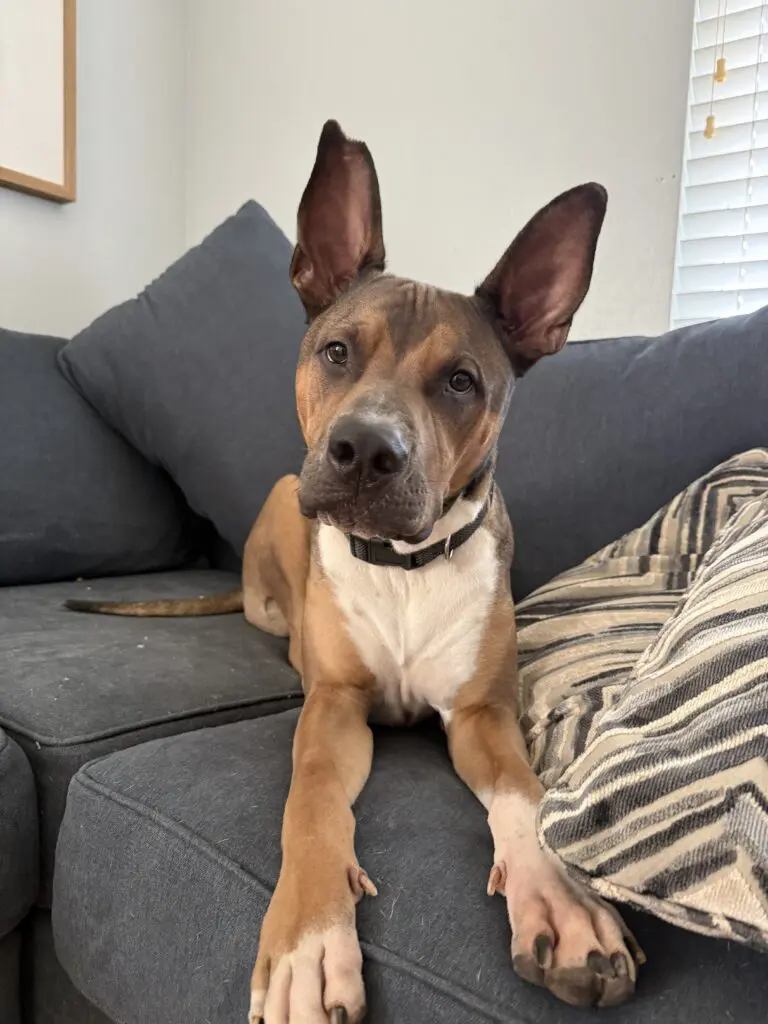 I enjoy other pups and used to be a big fan of the dog park, especially wrestling and rolling around with my buddies. After a scary incident with an aggressive dog, I’m more cautious and alert around new dogs. Because of that, I’ll prefer slow, thoughtful introductions and a confident handler who can help me rebuild trust and confidence at my pace. I’ve never bitten a dog or a person, and my ruff-housing during play is just my enthusiasm!