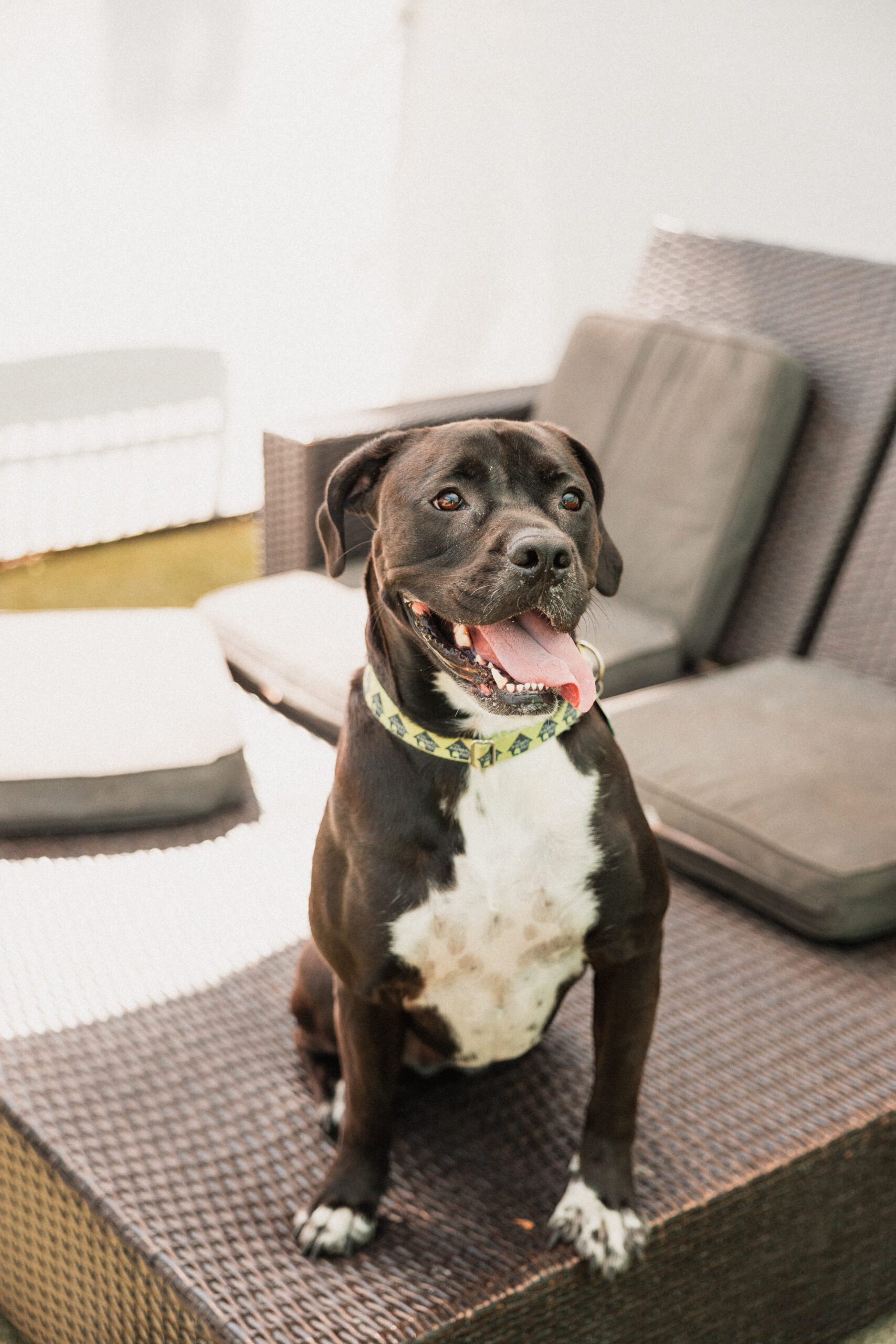 My journey hasn’t been easy — I was rescued from a homeless encampment by the legendary Babs in San Diego, and I’ve come a long way since then. These days, I’m fully house-trained, working hard on my leash skills, and rocking my muzzle when I need to. I don’t have separation anxiety, and I’m still deciding how I feel about crates.