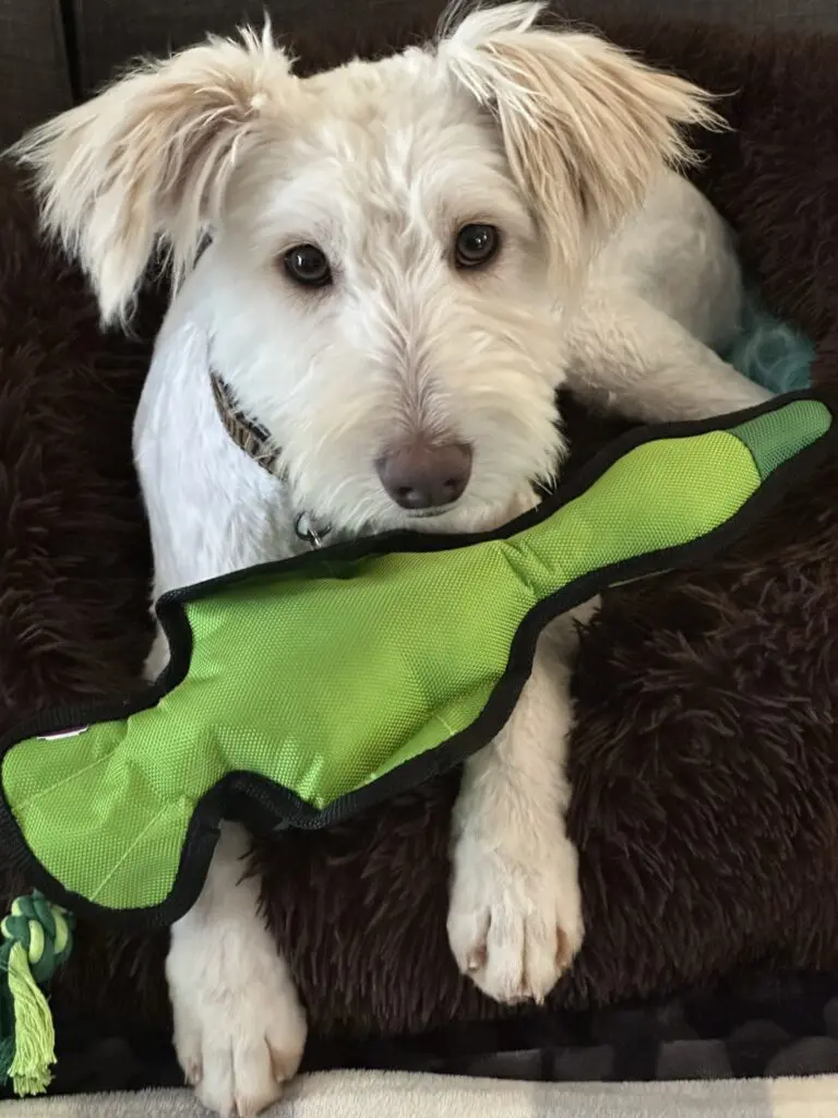 I’m looking for a family who will be patient with me while I grow into my most confident self. I’d love a home with another friendly dog, and humans who are around a lot and want me to be part of their everyday life. I promise to bring a whole lot of love, laughter, and maybe a missing sock or two into your world.