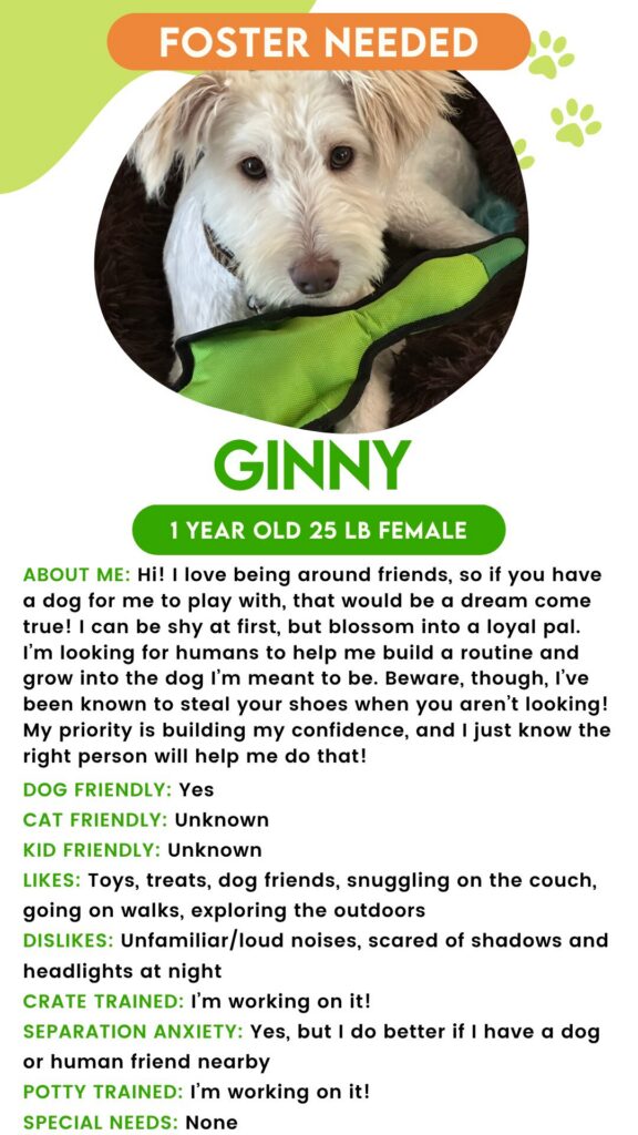 I’m a 1-year-old girl with soft white curls, a big heart, and what my foster says are major puppy vibes. I might look like I’ve got it all together, but truthfully… I’m still figuring this big world out.