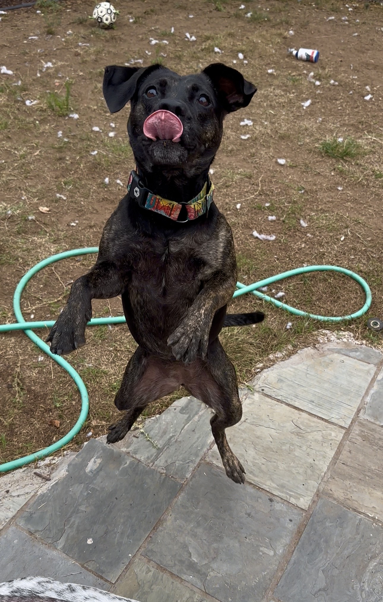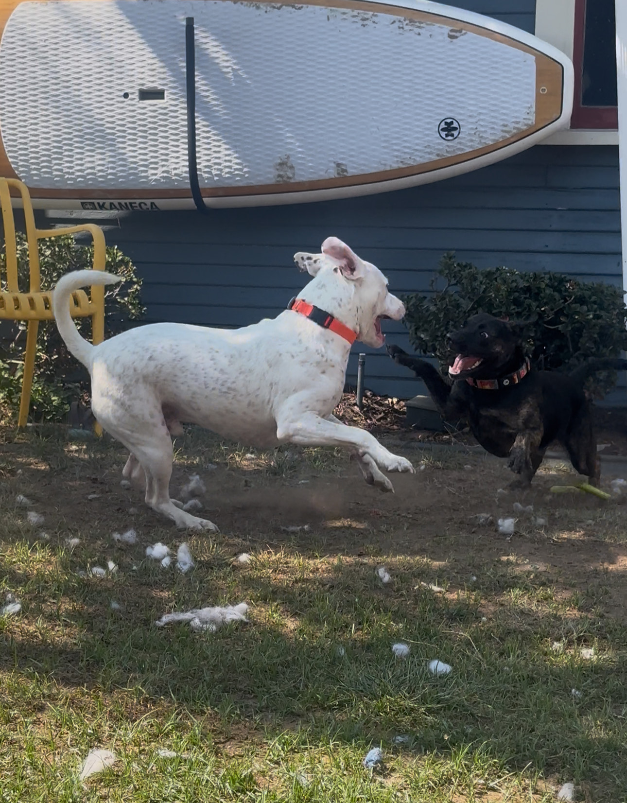 I’m the ultimate social butterfly. People? Love them all. Kids? LOVE them (the more playful the better!). Dogs? I’ll wrestle, romp, and play with anyone, big or small. I even like cats! I get so into playtime that I sometimes sound like a little gremlin—but that just means I’m having the best time.