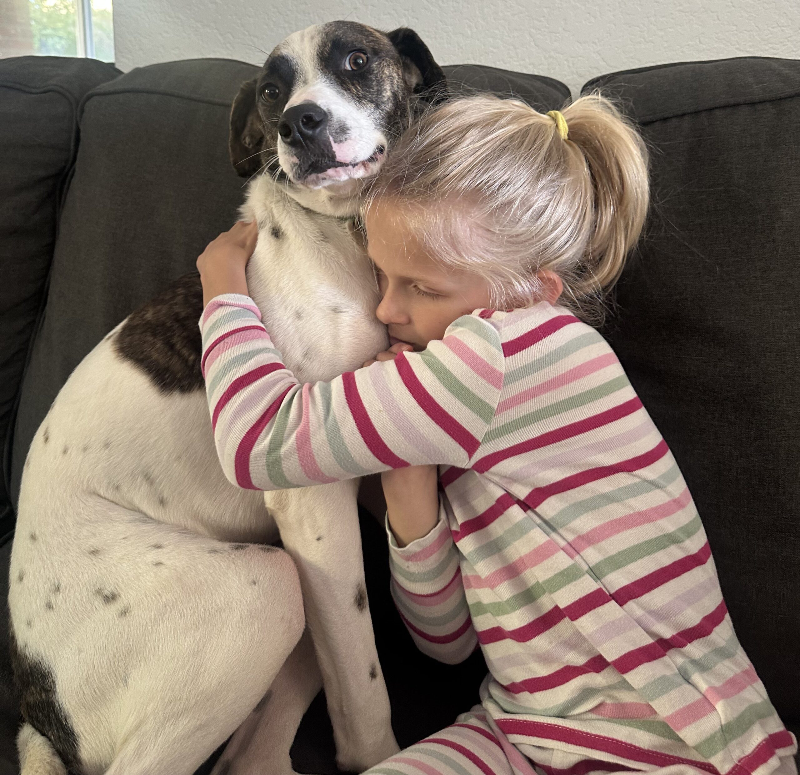 I’ve got the best mix of playfulness and chill – I love starting my day with a little excitement, but I settle down quickly and spend most of my time being a mellow and affectionate cuddlebug. My favorite things? Wrestling with my foster dog sibling, snuggling on the couch, and gently tearing apart my stuffie toys.