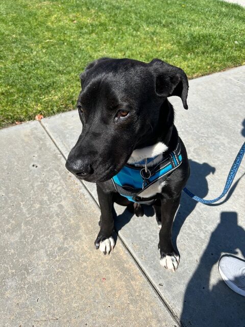 I get along great with people and love being around my humans. I’m crate trained, fully potty trained, and I’m working on my leash skills. I do have just a little separation anxiety, but it’s pretty mild. I’m not a fan of cats, though, so I’d do best in a home without any. I also get a bit nervous around big or aggressive dogs, but I might be okay with a smaller, calm pup.