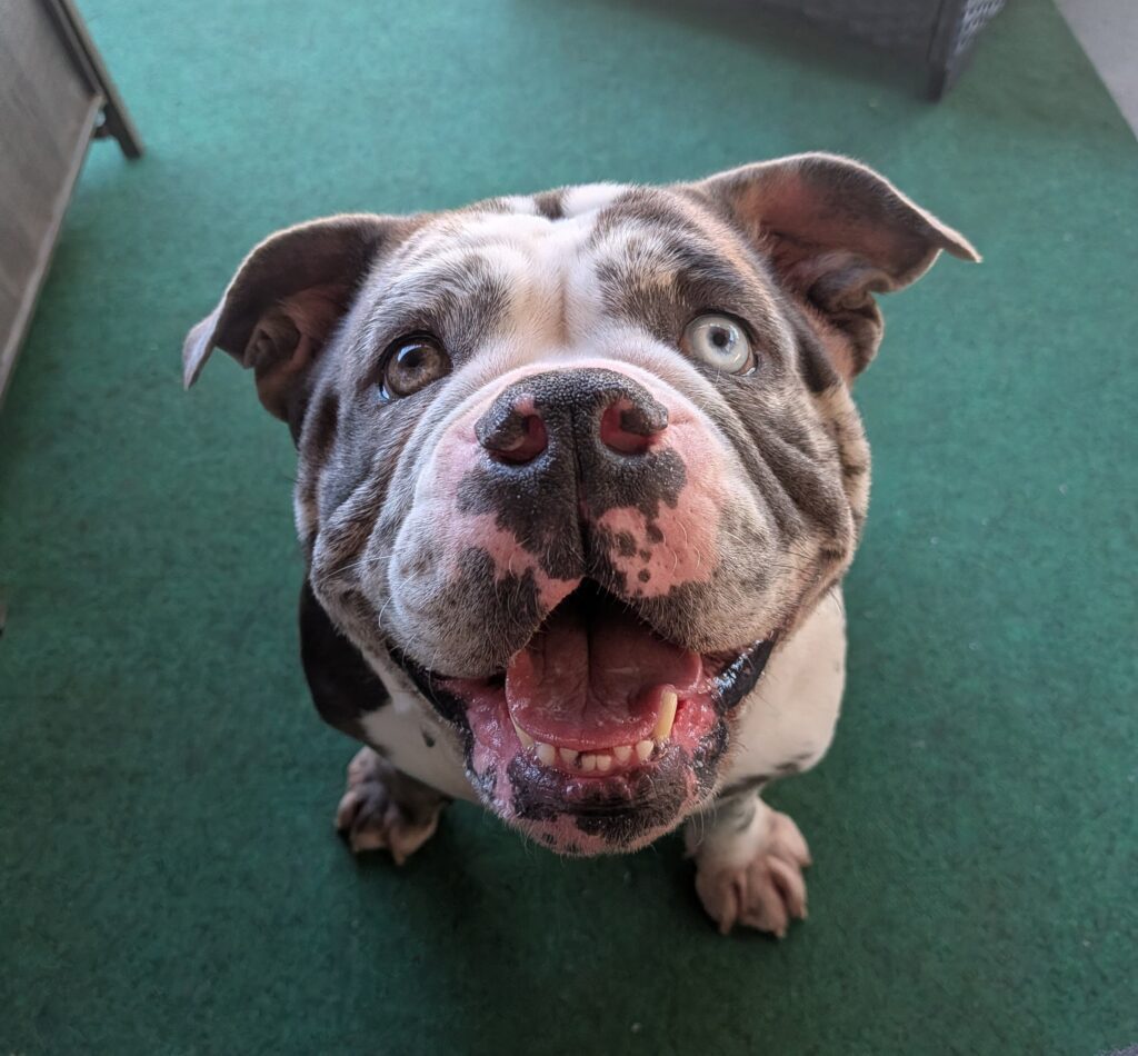 Stubborn streak: She’s smart, strong-willed, and a little independent (like most American Bullies). She responds beautifully to consistent, fun training, praise and boundaries. She is very eager to please once she trusts her leader.