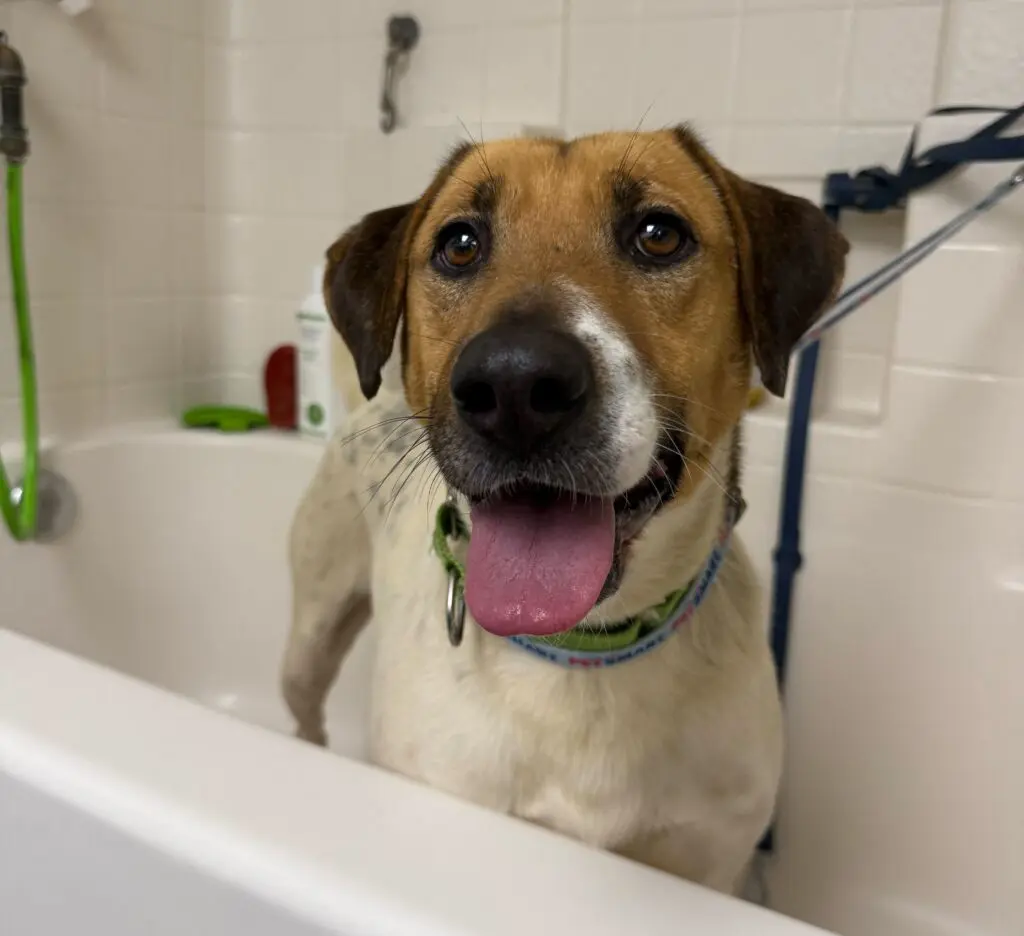 I’ve gotta be honest — crates are not my lane. I really dislike them and have been known to channel my inner Houdini to escape. I’ve also had some separation anxiety in one of my two foster homes, and I currently use medication as needed to help me settle. Because of that, I’d do best with someone who works from home or is around more often, at least while I build confidence and learn that you’ll always come back.